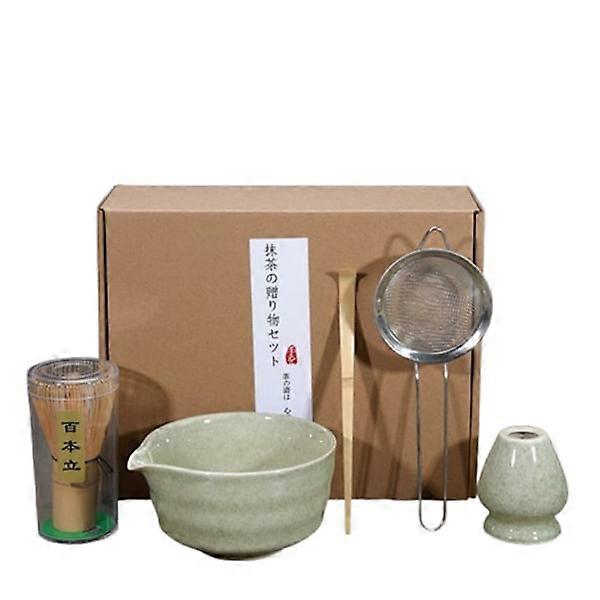 Green Ceramic Matcha Tea Set with Bowl, Whisk Holder & Whisk, 5-Piece Set [ZHE] green