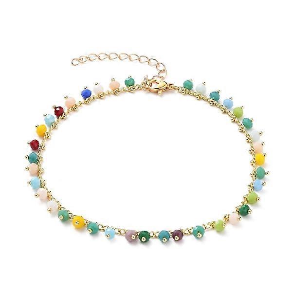 Handmade Anklet in Gold Plated AISI 304 Steel with Multicolored Glass Beads
