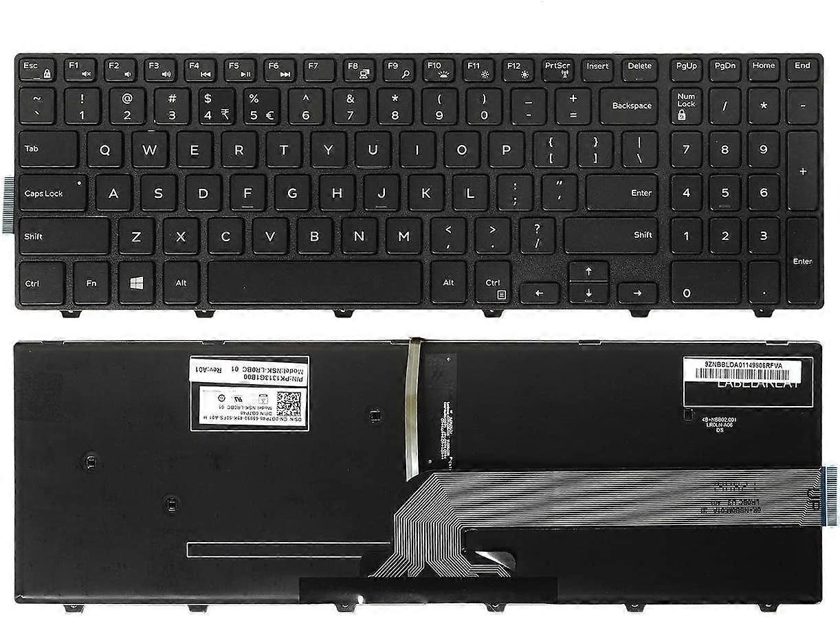 New Backlit Laptop Keyboard with Frame for Dell PN: mp13n73us-442 OG7P48 MP-13N8 MP-13N83USJ698 PK1313G3B00 NSK-LR0BC 1D, US Layout, Black