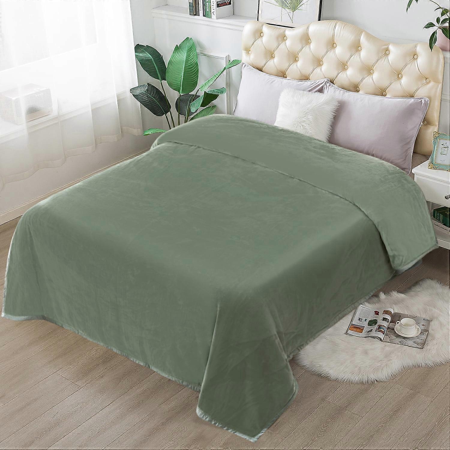 JML Flannel Fleece Blanket,Soft 1 Ply Lightweight Bed Blanket,Green, Queen (79"x 91")