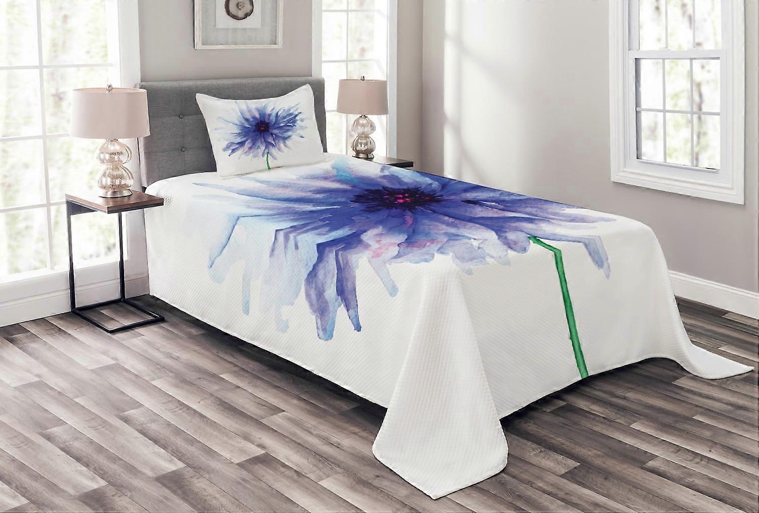 Ambesonne Nature Quilted Bedspread Set 2 Pcs, Earth Cornflower, Twin Size, Navy Blue White