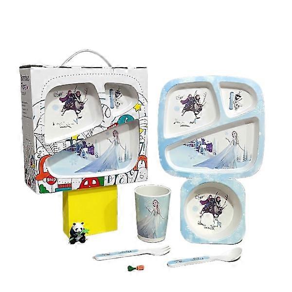 Creative New Bamboo Fiber Children's Dinnerware Set Five-Piece Set Preschool Baby Ice.and.Snow.Gift.Box Five.piece.set.with.box