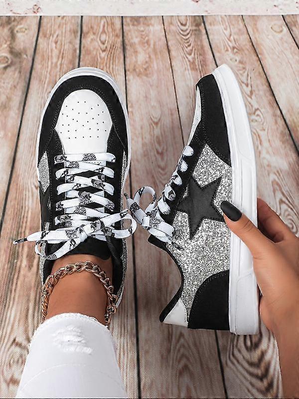 Women's New Fashion Star Style Glitter Sneakers, Casual Low Top Sequin Shoes for All Seasons, Perfect for Parties Gifts Travel School