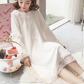 Women Cotton Nightdress Girl Sleep Dress Long Sleeve Nightwear Princess Pajamas