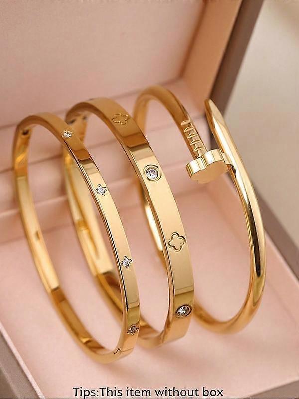 Women's Stainless Steel Bracelet Set, Flower Stud Design, Casual Style Jewelry for Women, Perfect Gift for Her, Stackable Bracelets