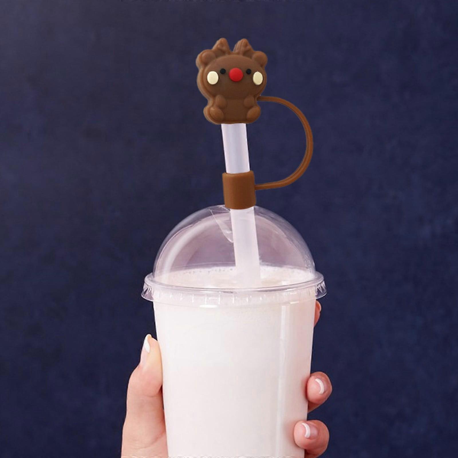Txmfgh Christmas Reindeer Snowman Straw Cap - Cute and Functional Silicone Straw Stopper, Perfect for Glasses