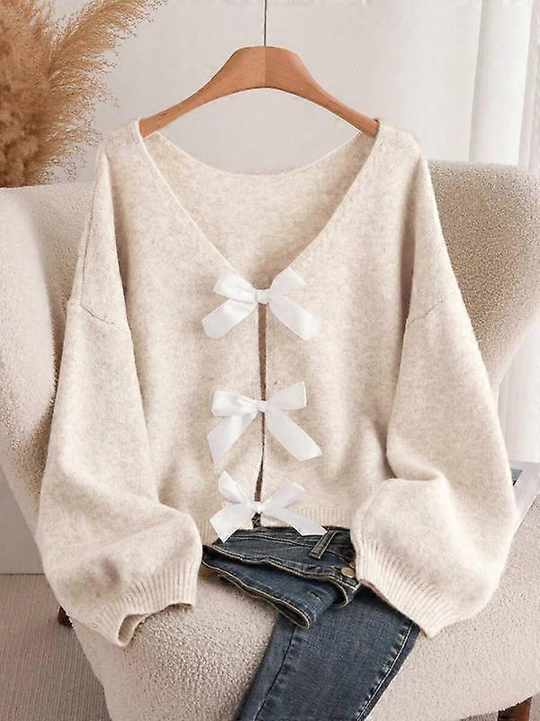 Plus Size Women's Fashion Bow Accent Comfortable Versatile Knitted Sweater For Autumn/Winter