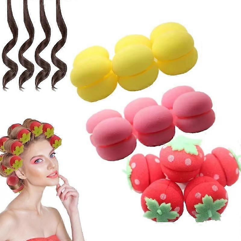 6PCS Sponge Roller Curler Strawberry Ball Sponge Curling Ball Women's Hair Styling Tool Sleeping Curling Iron is suitable for lazy hairdress