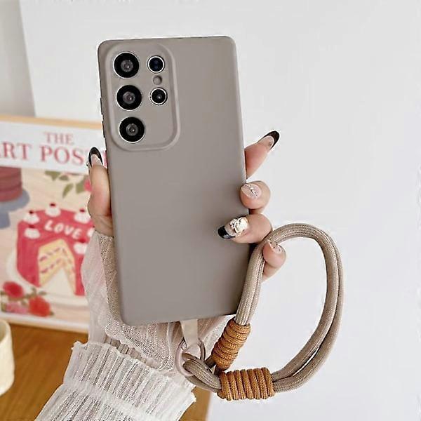RYI_Wrist Strap Candy Color Soft Silicone Case Lanyard Matte Shockproof Protection Compatible with S22 S24 Ultra Plus Mobile Case Light Gray S22