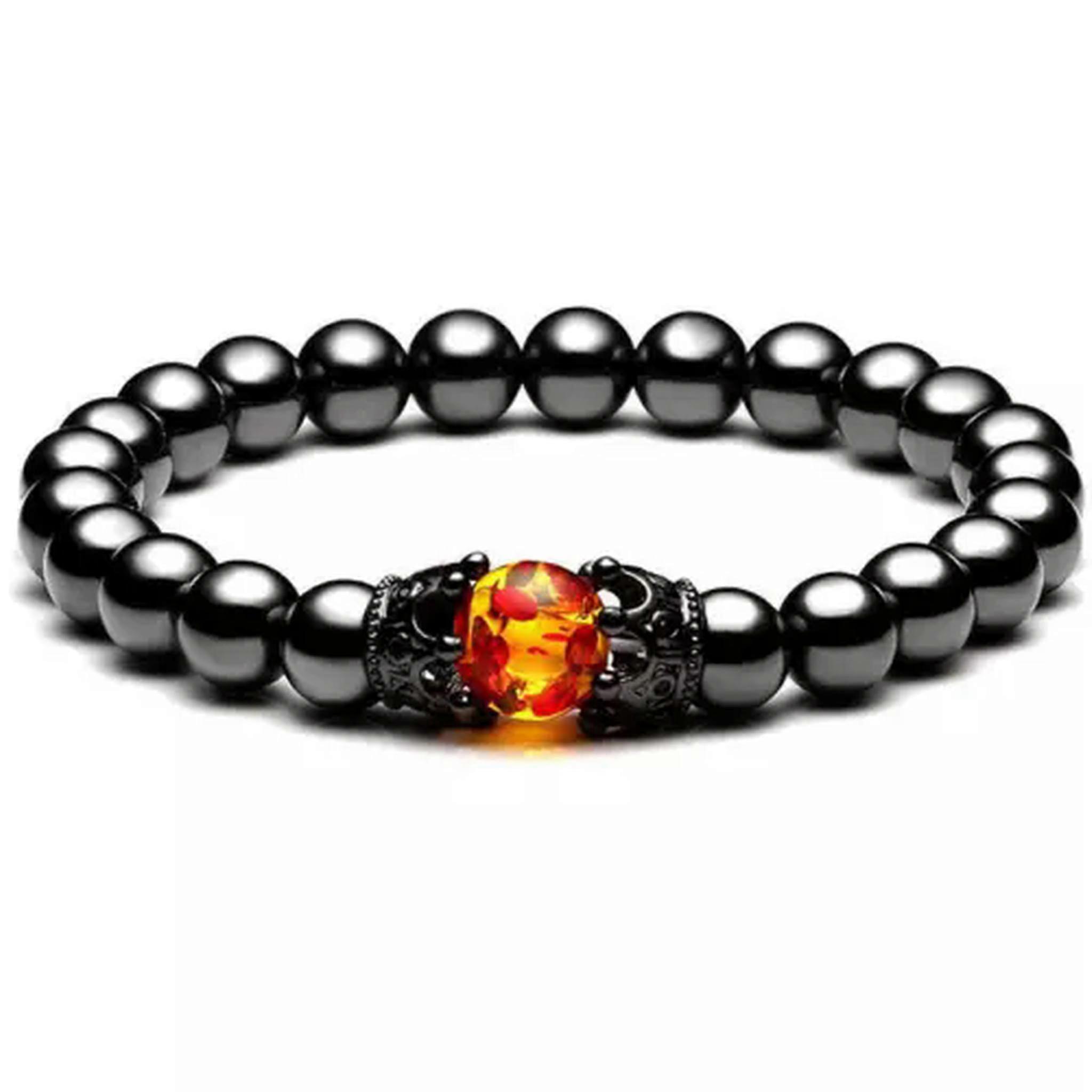 RSAMD Men Women Natural Stone Bracelet Hematite Pink Quartz Stone Distance Bracelets-Hematite