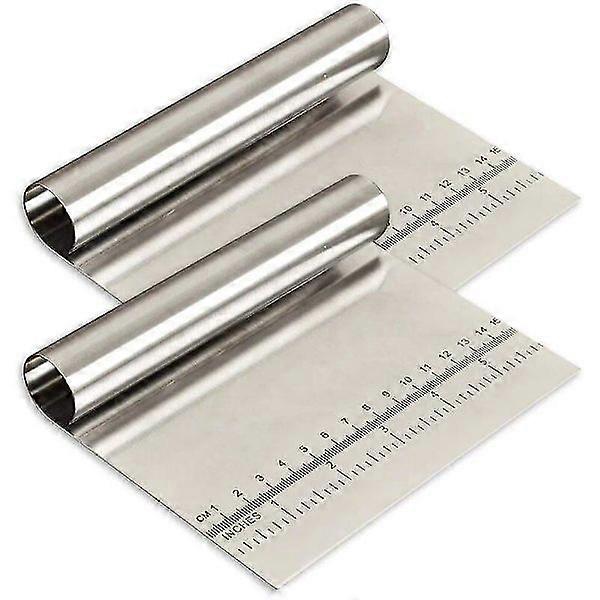 2-pack stainless steel dough scraper with measuring scale, cookie cutter, pizza cutter, bread divider