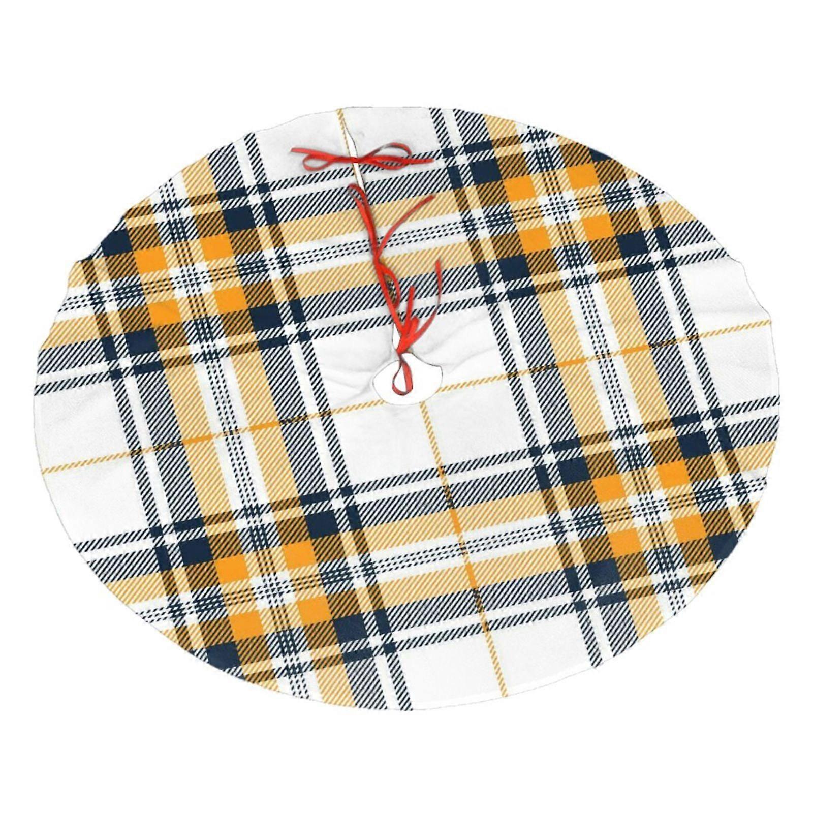 Yellow And Blue Tartan Plaid Scottish Christmas Tree Skirt, Soft And Funny Merry Christmas Tree Collar Farmhouse Xmas Holiday Decoration 30"