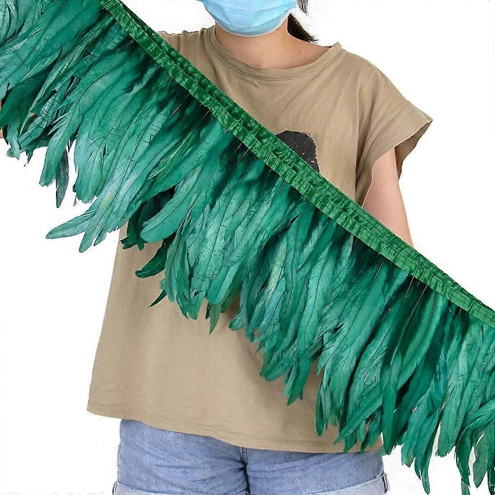 1M Gold Silver Rooster Tail Feather Ribbon Crafts 25-30cm Natural Feathers Fringe for Wedding Party Clothing Dress Decoration Dark green 25-30cm