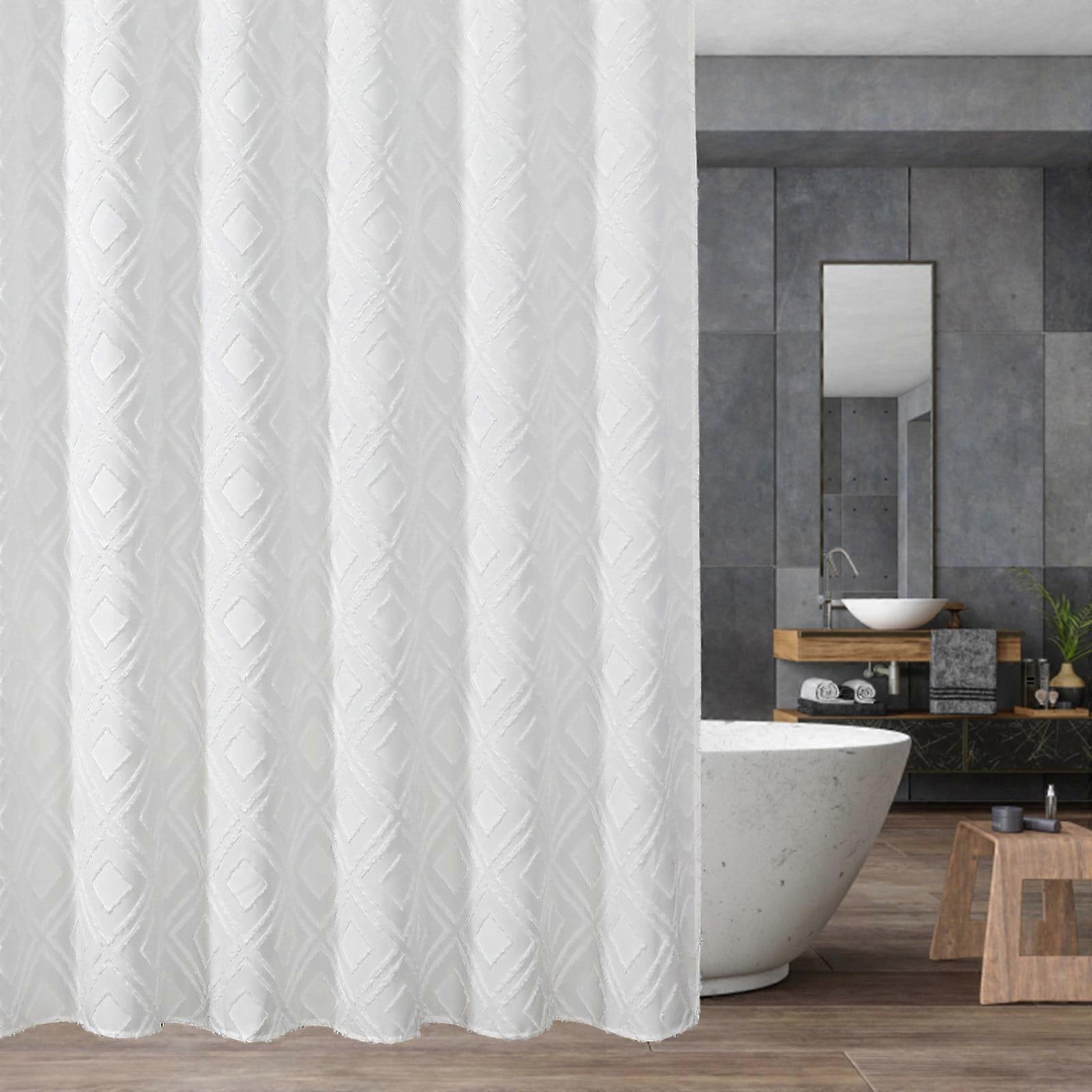 Cailmei Shower Curtain for Bathroom, Modern Farmhouse Design, All-Season Use, Long Shower Curtain Set, White