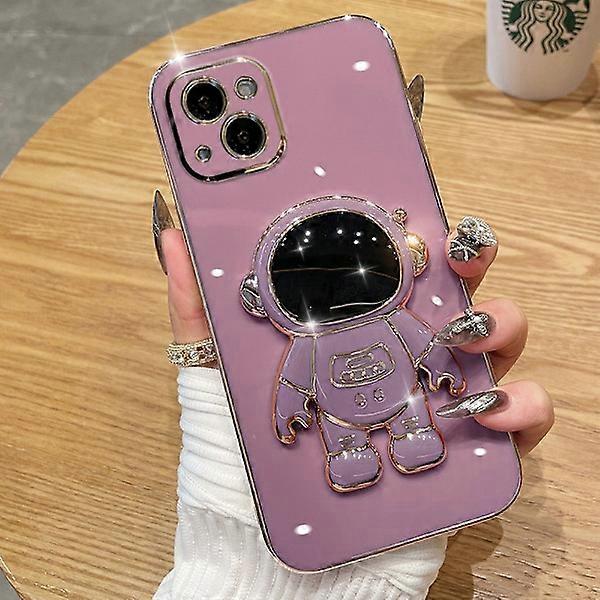 6D Electroplated Astronaut Hidden Stand Case with Camera Protection, Soft TPU Shockproof Bumper, Foldable Stand, Purple, compatible with iPhone 12