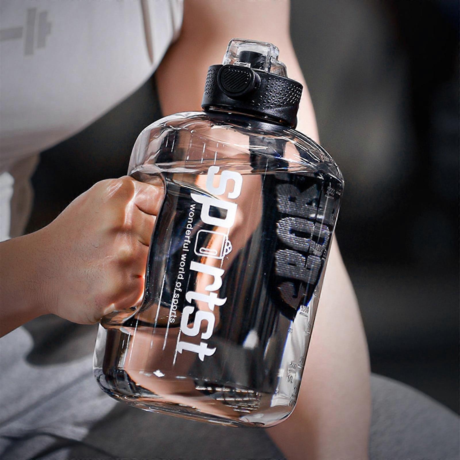 WICVIK Large Capacity Water Cup Ton Barrel Sports Fitness Male And Female Students Portable Plastic Space Pot Big Belly Water Cup (1.7L,Black)