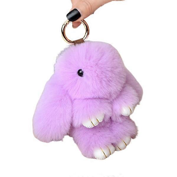 Rabbit Keychain Soft Faux Fur Rabbit Keychain Pom Handbag Backpack Decoration Charm Key Chain Purple