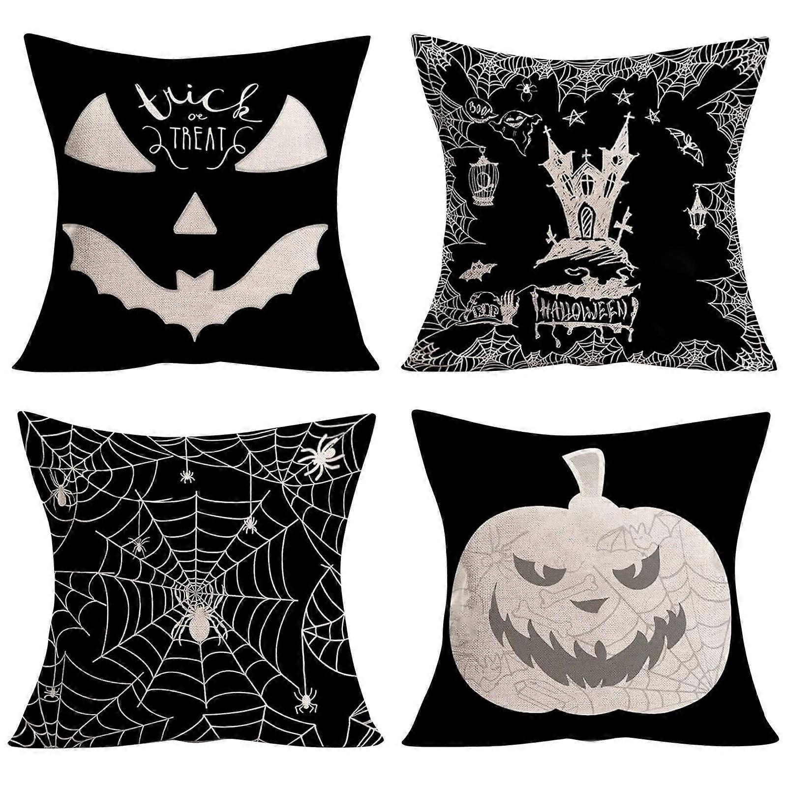 17.7*17.7in Halloween Pillow Set Ghost Cushaw Head Series Linen Material Halloween Pillow Cover (Without Pillow Core)
