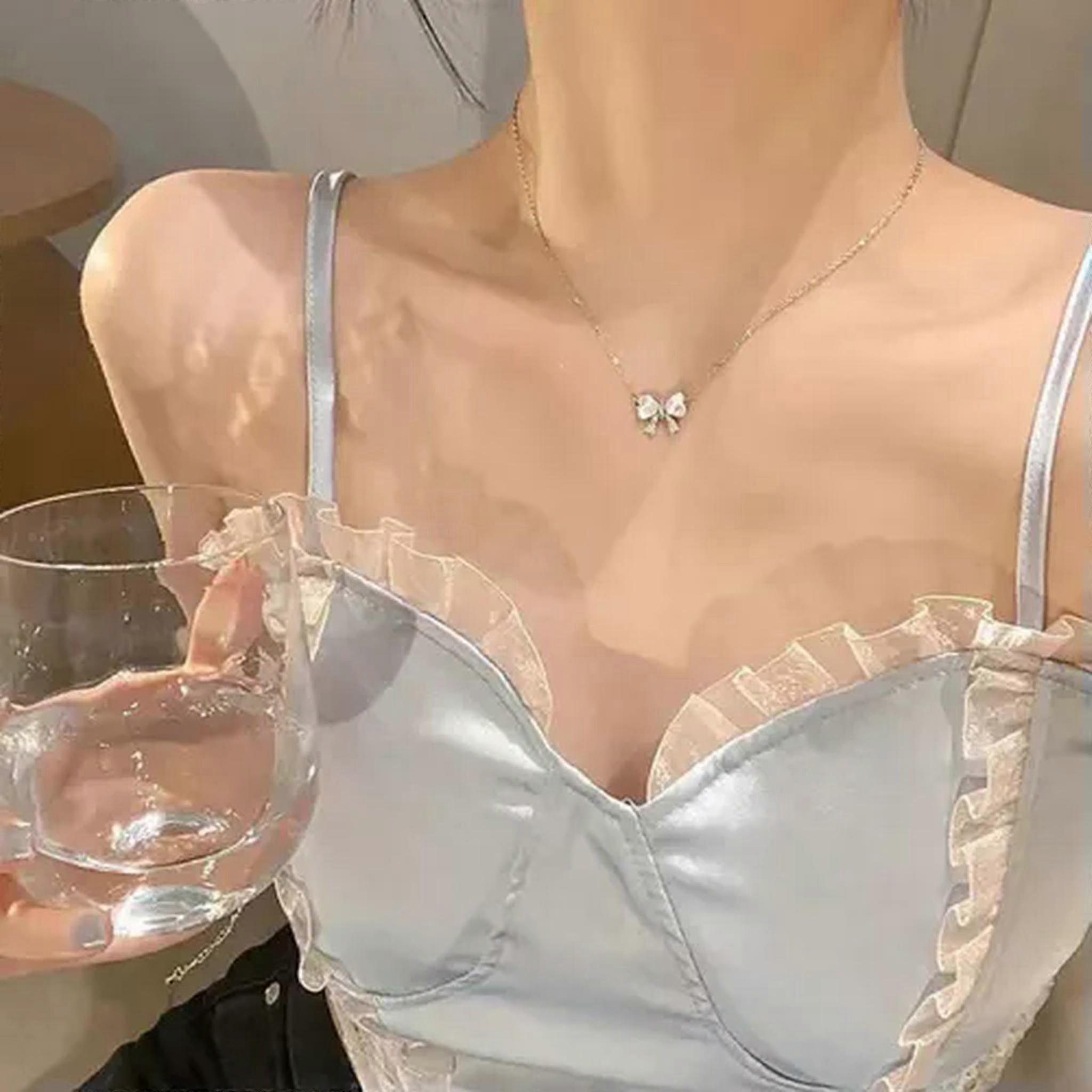 RSAMD Silver Color Crystal Bowknot Pendant Clavicle Chain Fashion Watch Finger RiJO-A2