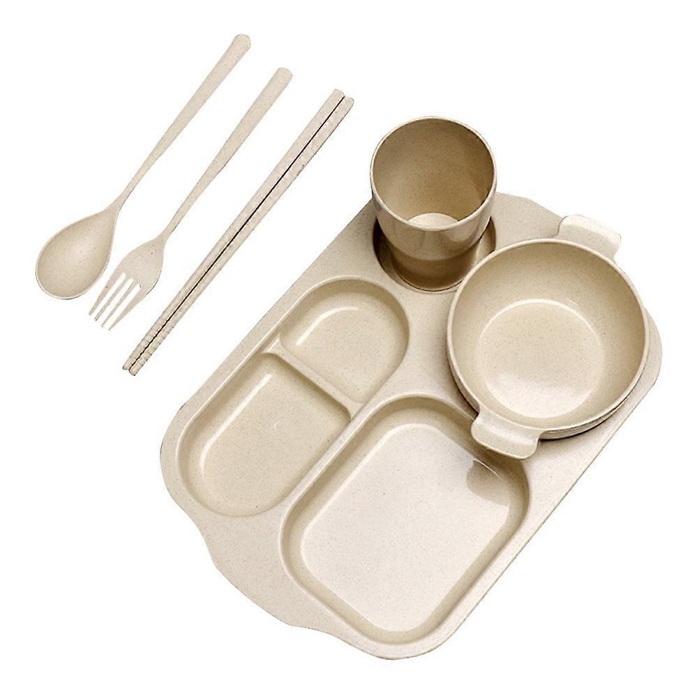Eease 6PCS Eco-friendly Wheat Straw Tableware Set for Kids, Unbreakable Plate, Bowl, Cup, Spoon, Fork & Chopsticks - Yellow