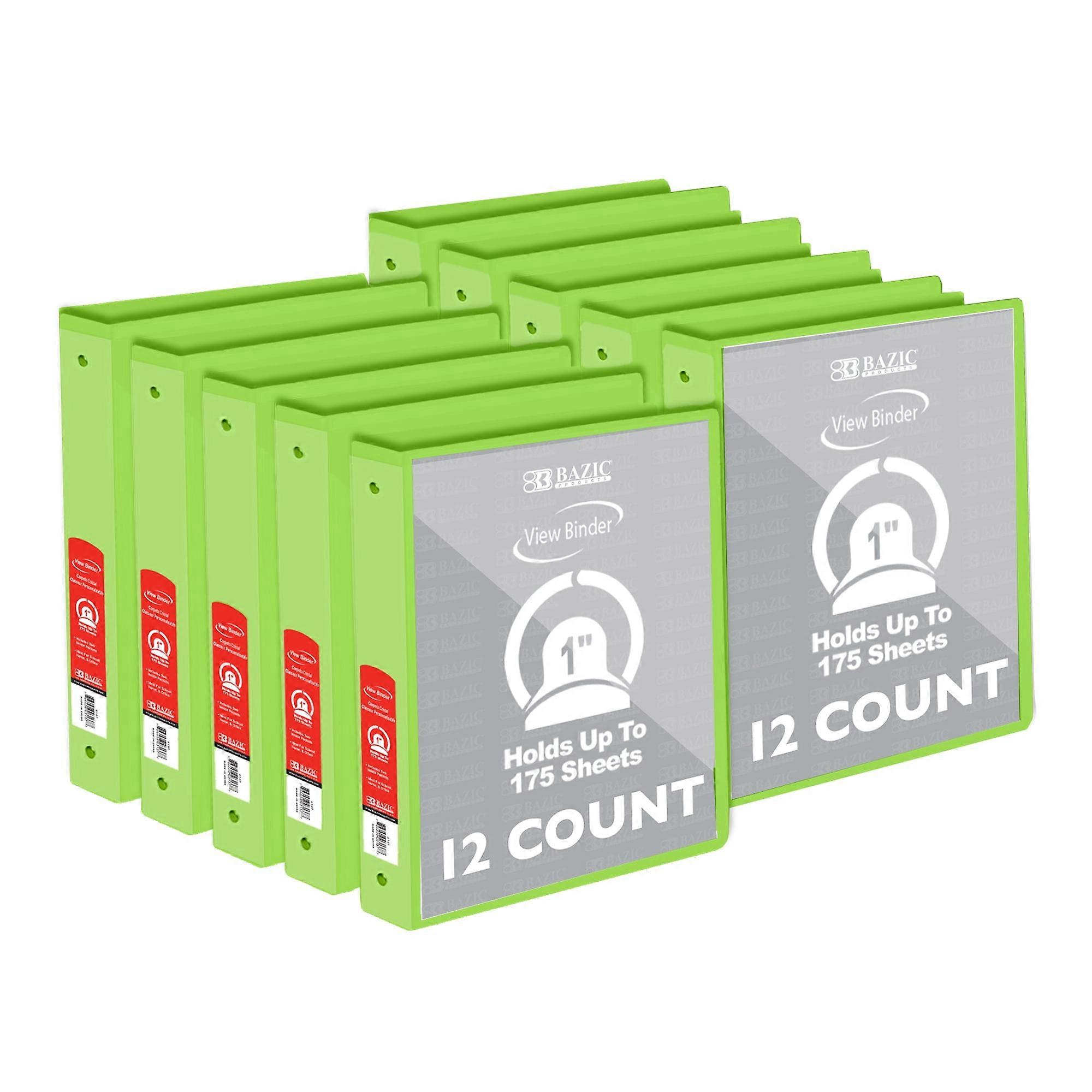BAZIC 3 Ring Binder 1" Economy View Binders Lime Green, Hold 175 Sheets, 12-Count