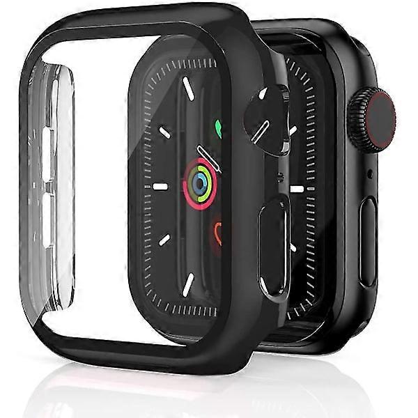 Glass+ Cover Compatible with Apple Watch 44mm/40mm, Screen Protector + Bumper for iWatch 42mm/38mm, Series 5 4 3 SE 6, Black