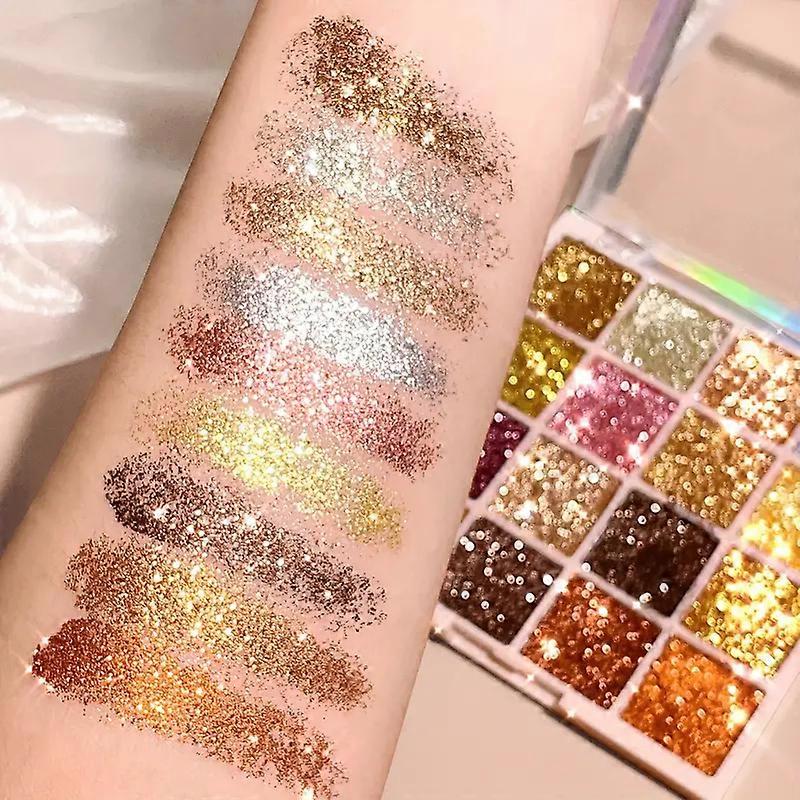 16 Colors Glitter Eyeshadow Palette Shimmer Multicolor Golden Color Sparkle Sequin Finish Body Face Makeup Stage Party Makeup