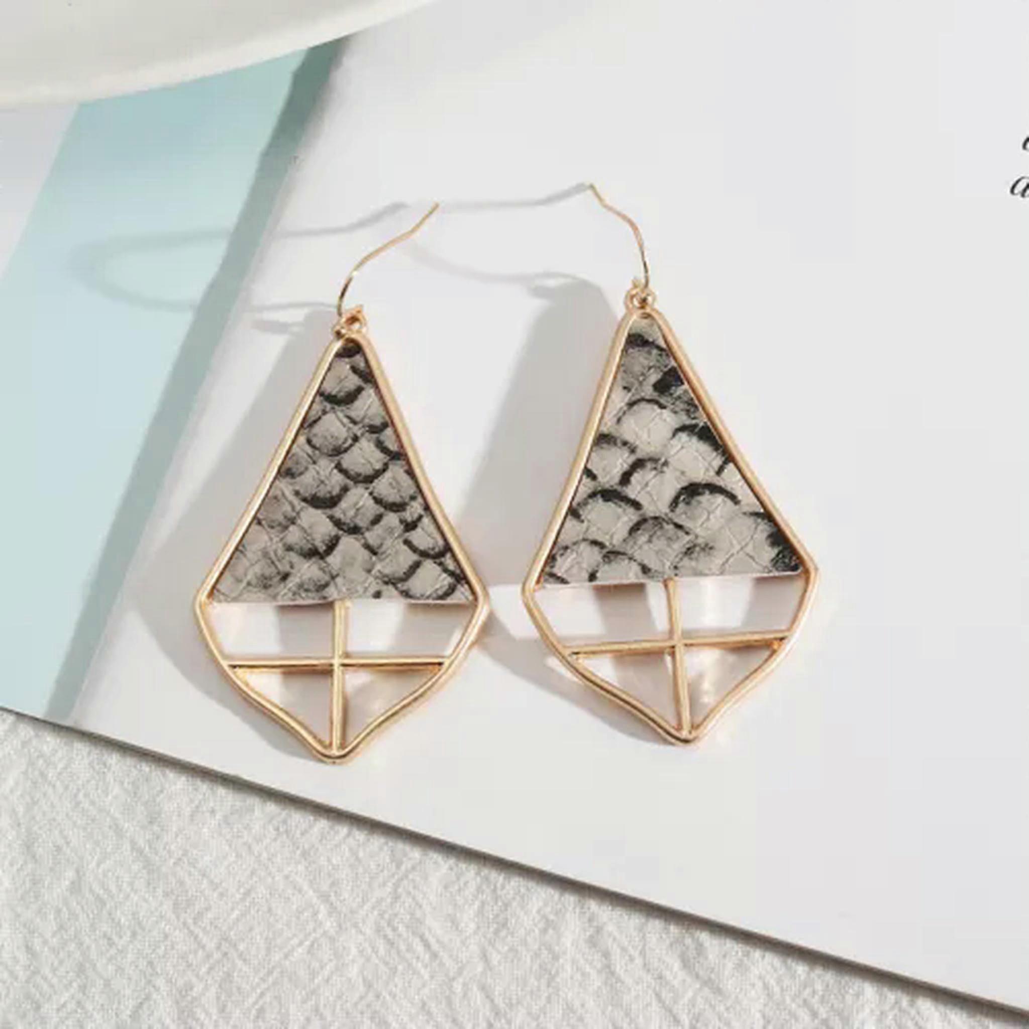 RSAMD Gold Metal Snakeskin Stripes Cork Leather Hollow Cross Teardrop Women Earrings-Snakeskin
