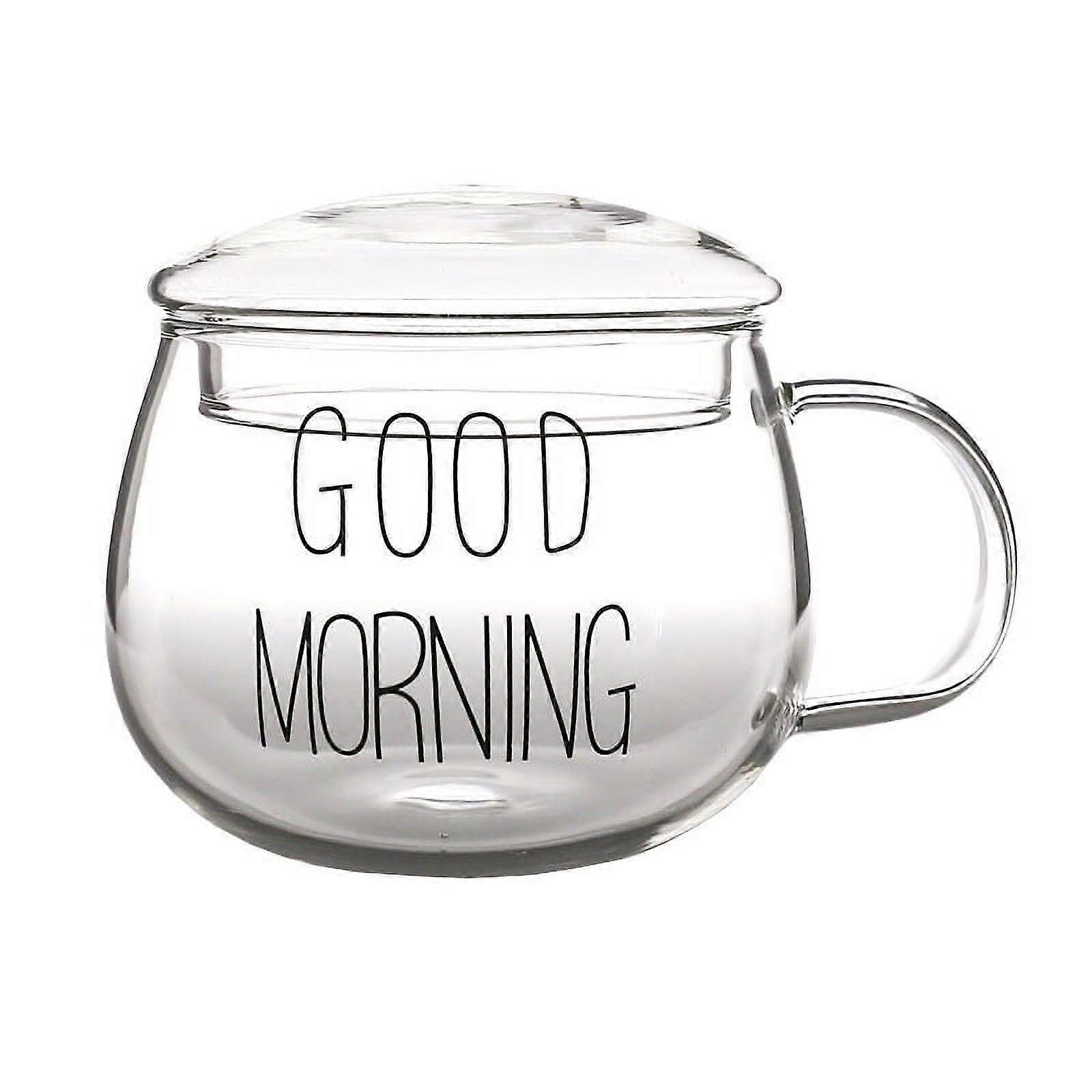 Heat-Resistant Glass Mug with Handle, 350ml Microwave-Safe Tea/Coffee Cup, Black Letter Design with Round Lid