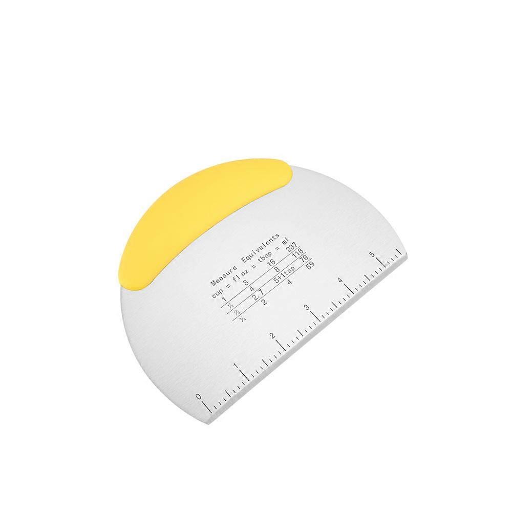 Custom semi-circular stainless steel dough cutter with scale, for baking flour, cutting noodles, dough, and scraping flour.