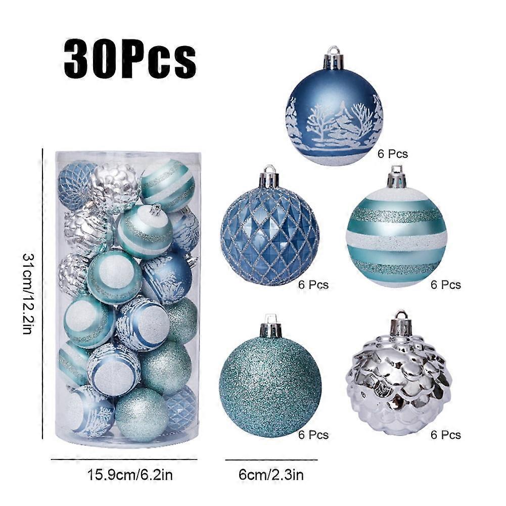 30 Pcs Christmas Ball Hanging Ball Blue Painted 2.36inch Christmas Ball Assorted 5 Style Shatterproof for Holiday Wedding Party