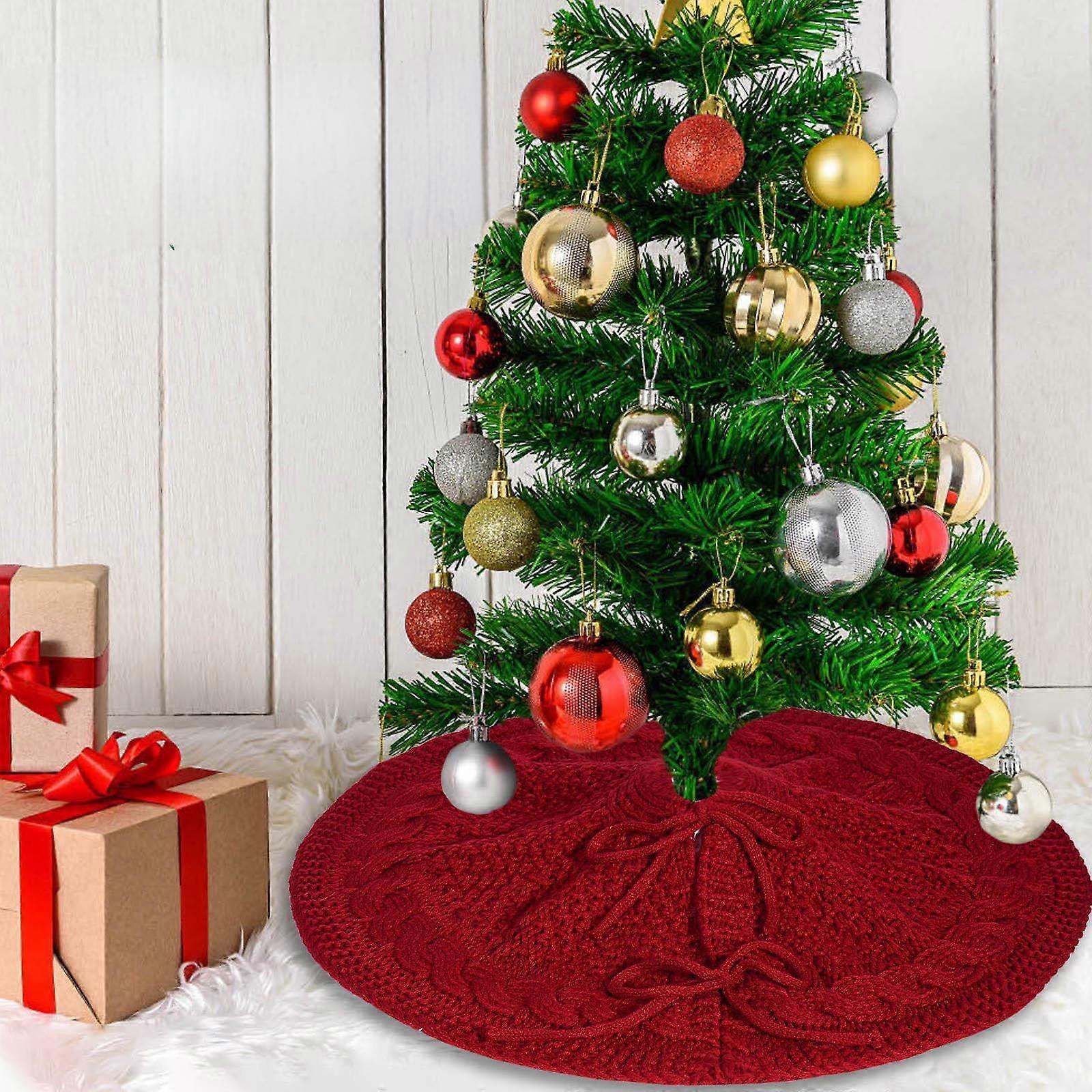 Cailmei Christmas Knitted Tree Skirt Knitted Christmas Ambiance Apron Christmas Tree Decorations Accessories Red 18.11X18.11X0.39In
