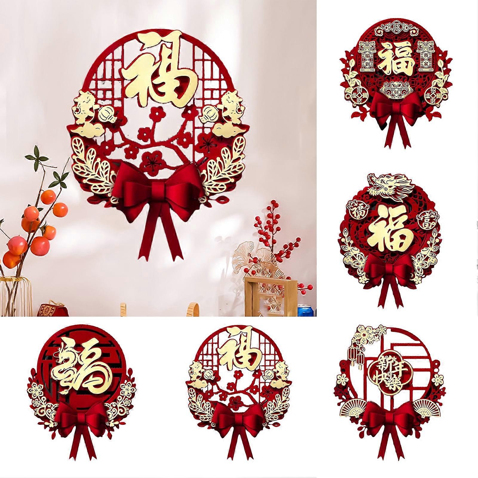 SUSUchens 3D Fuzzy Door Stickers The 2024 Year of The Dragon FU Character Thickened Good Luck Symbol Door Decals Festival Decoration Style B
