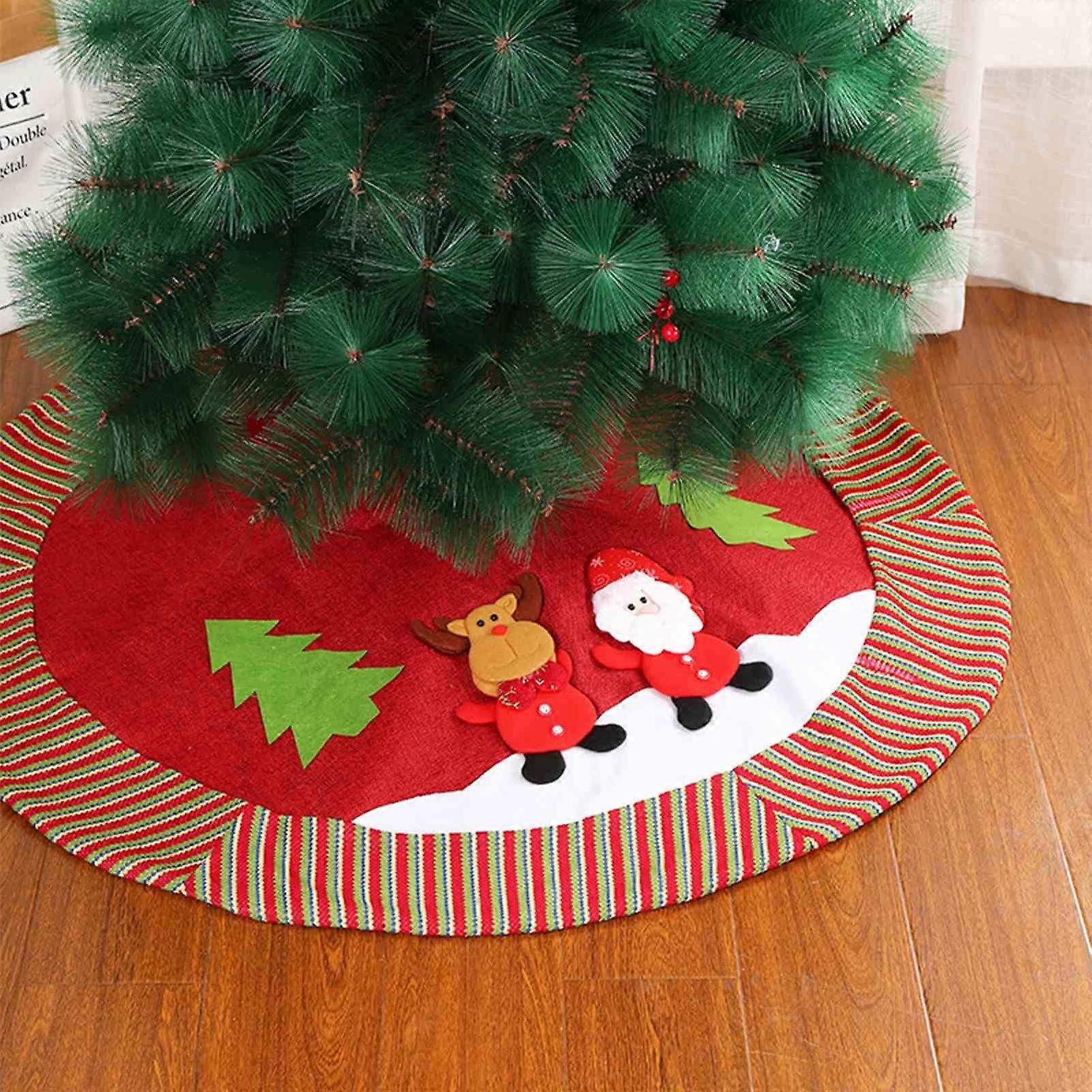 Knitted Christmas Tree Skirt, Santa, Deer, Snowman, Red, Compatible with Xmas Decor