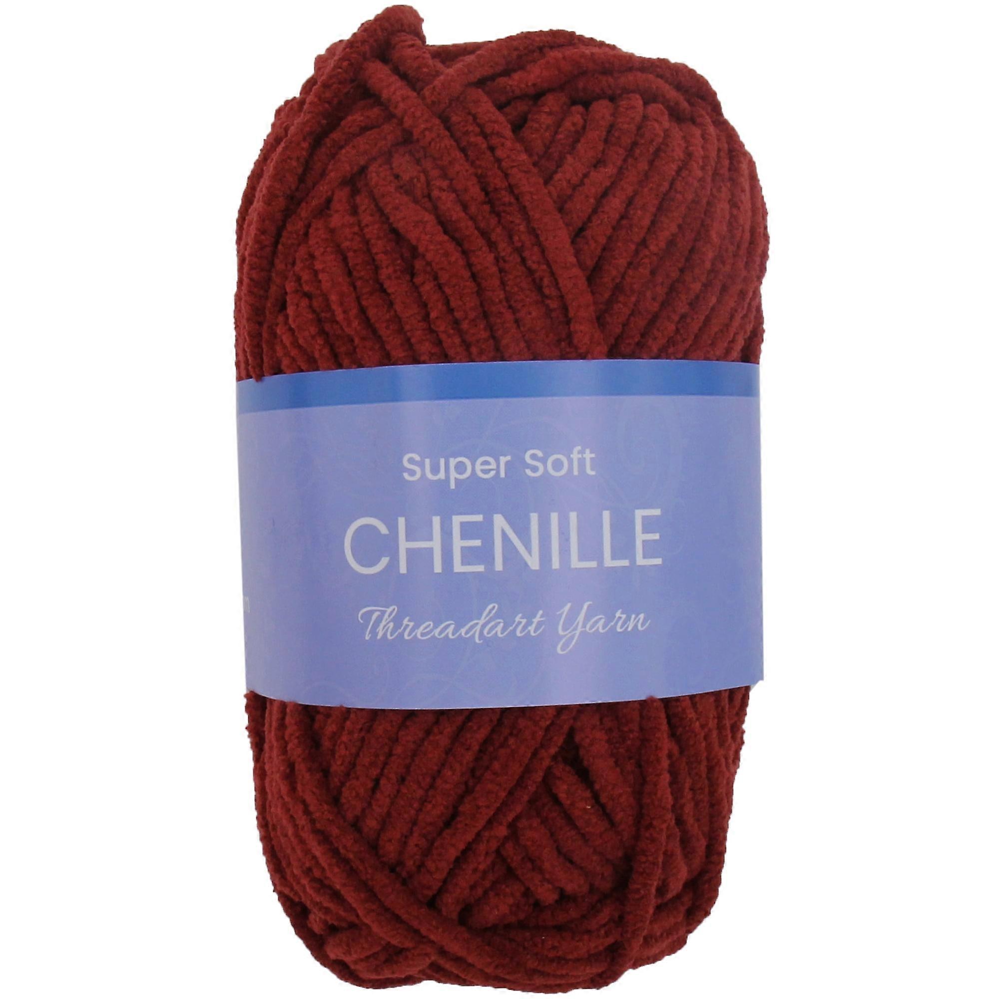 ThreadArt Chenille Yarn for Crocheting, Knitting, Amigurumi, Super Soft Plush Velvet Yarn - 50 Gram 60 yds #5 Fluffy Yarn Skeins - Burgundy