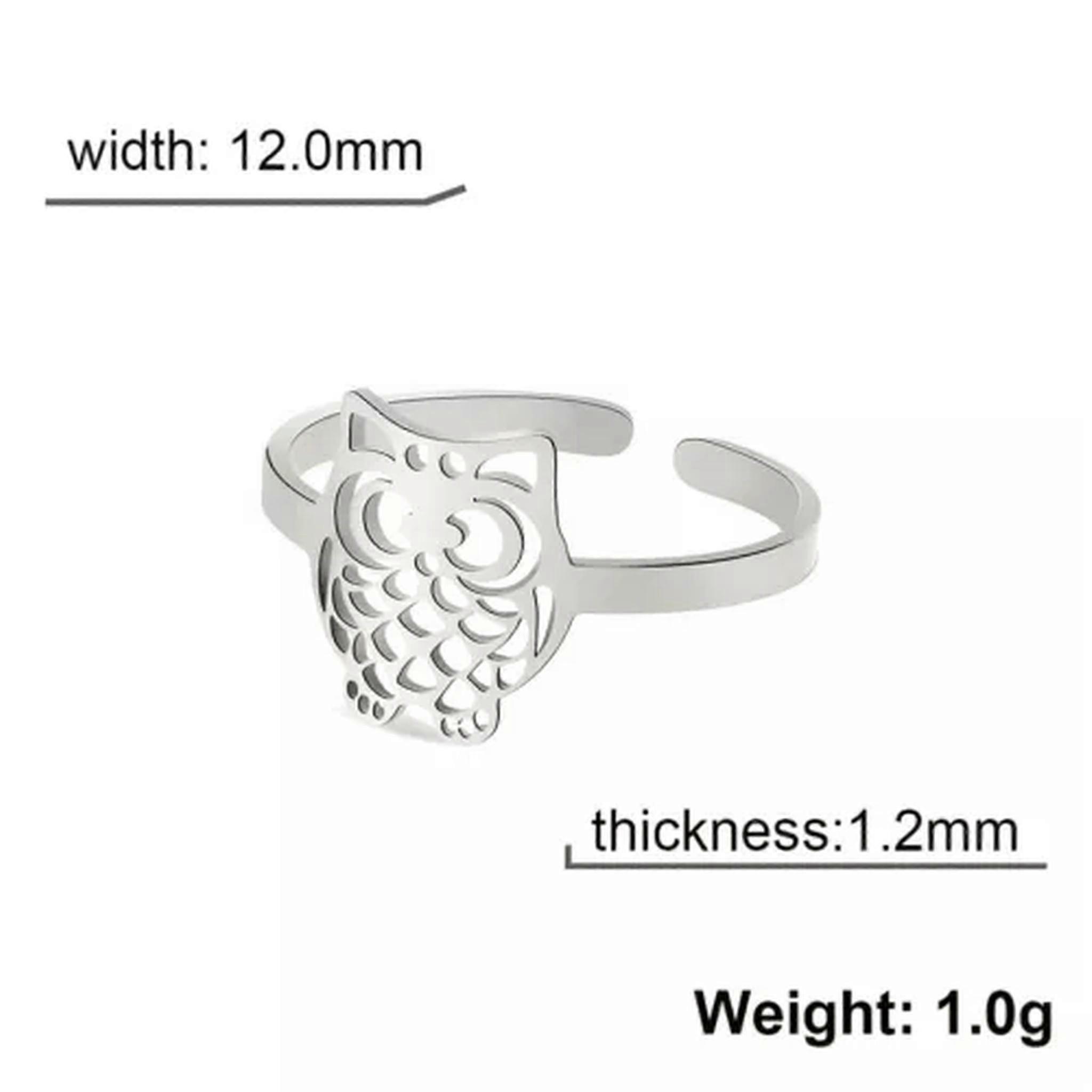 RSAMD Cartoon Night Owl Rings Stainless Steel Animal Jewelry Open Finger Ring Gift-Adjustable-Steel