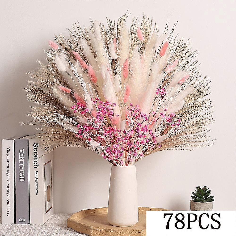 78Pcs Pink Eternal Pampas Grass Flower Bouquet Home Bedroom Vase Decor Natural Dried Gypsophila Wedding Accessories Couple Gifts