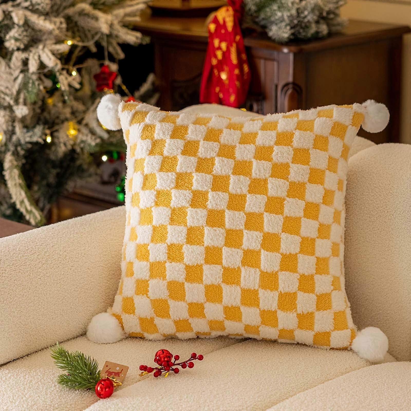 Cailmei Christmas Sofa Pillow Cover Christmas Decoration Pillowcase New Year Living Room Pillowcase Yellow Free Size