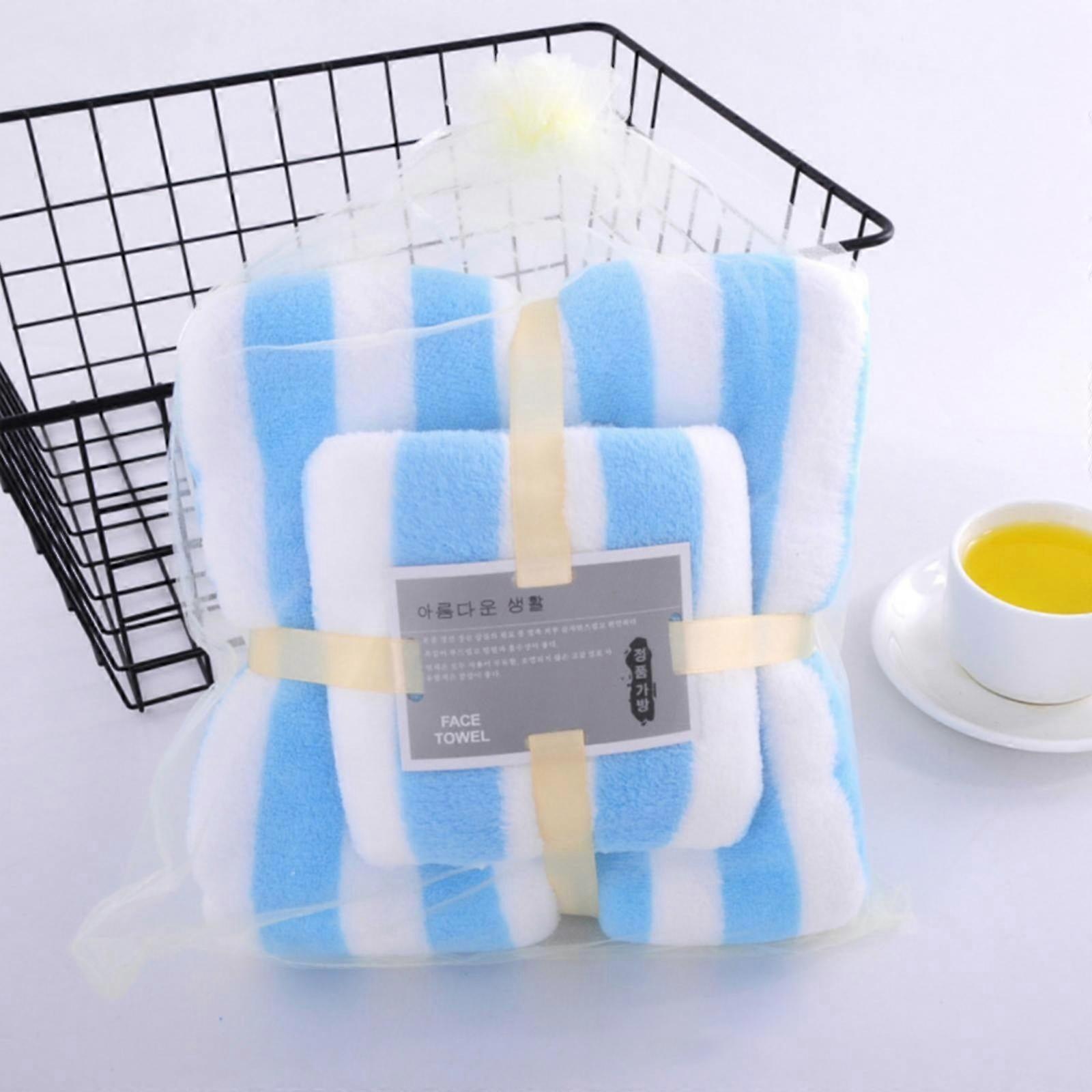 myvepuop Towel Set - 1 Bath & 1 Hand Towel, Super Soft Microfiber Coral Velvet, Highly Absorbent, Blue