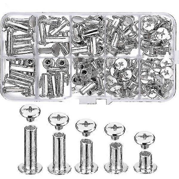 80pcs 5 sizes in metal binding screw, Chicago screw, stainless steel screw rivet for DIY, leather decoration