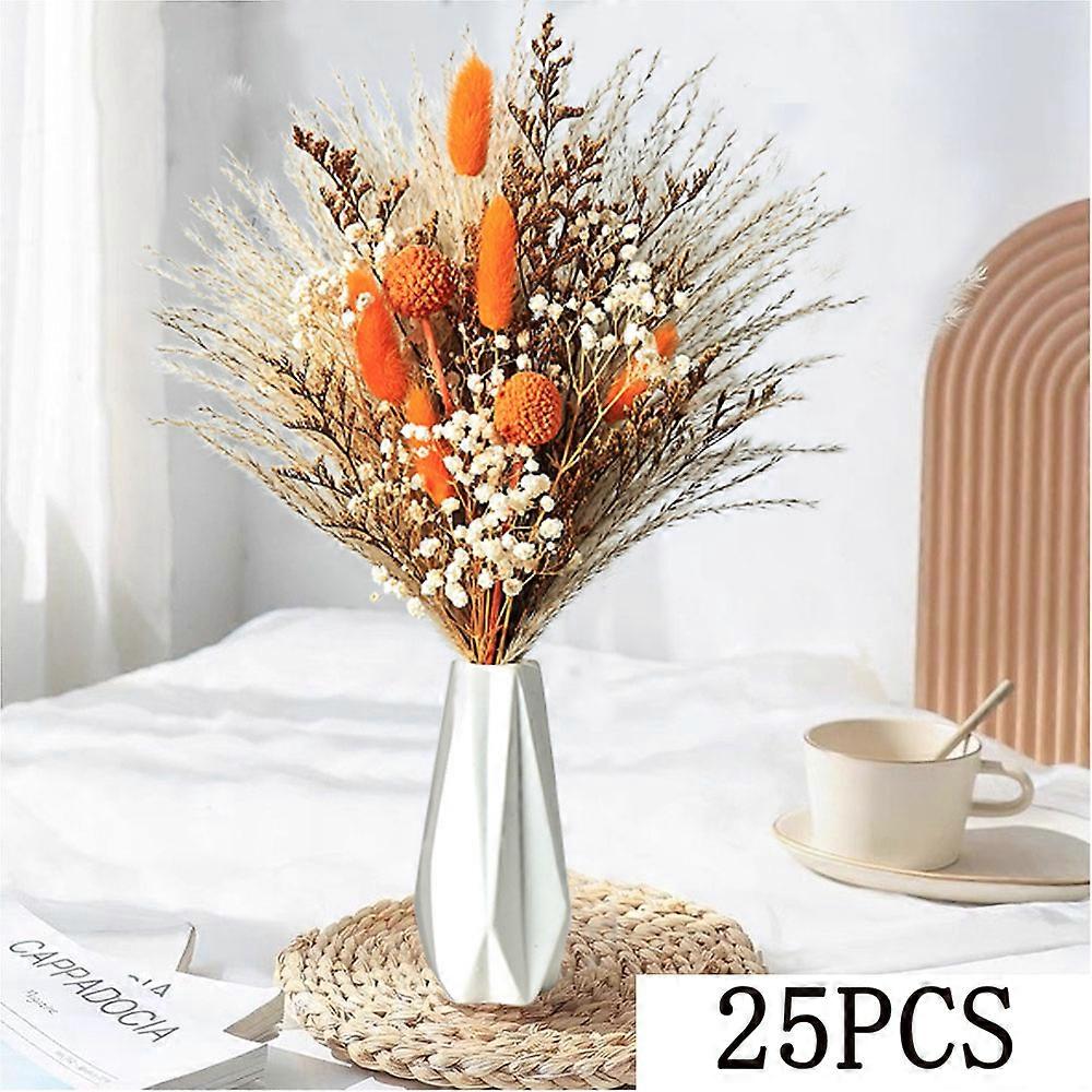 Real Dried Flowers Bouquet Bundle for Small Vase Filler Home Autumn Boho Decor Orange Bunny Tails Grass Baby's Breath Mini Bunch