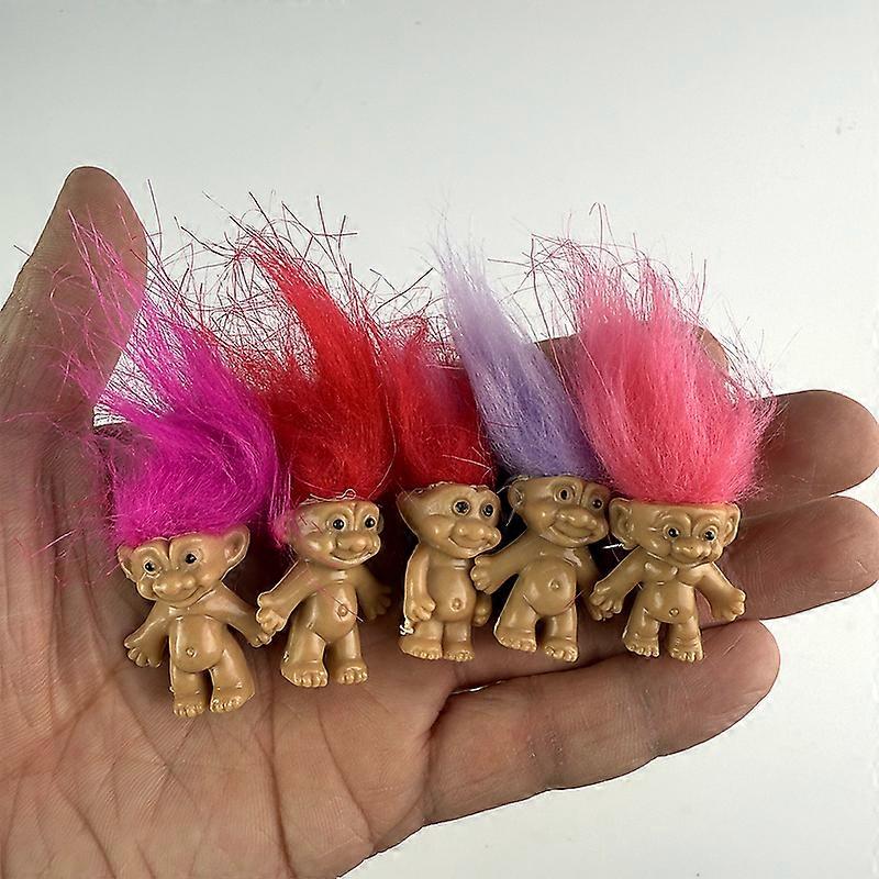 5Pcs Mini Trolls Dolls Anime Action Figure Colorful Hair Family Members Models Collection Kids Toys Gift Nostalgic