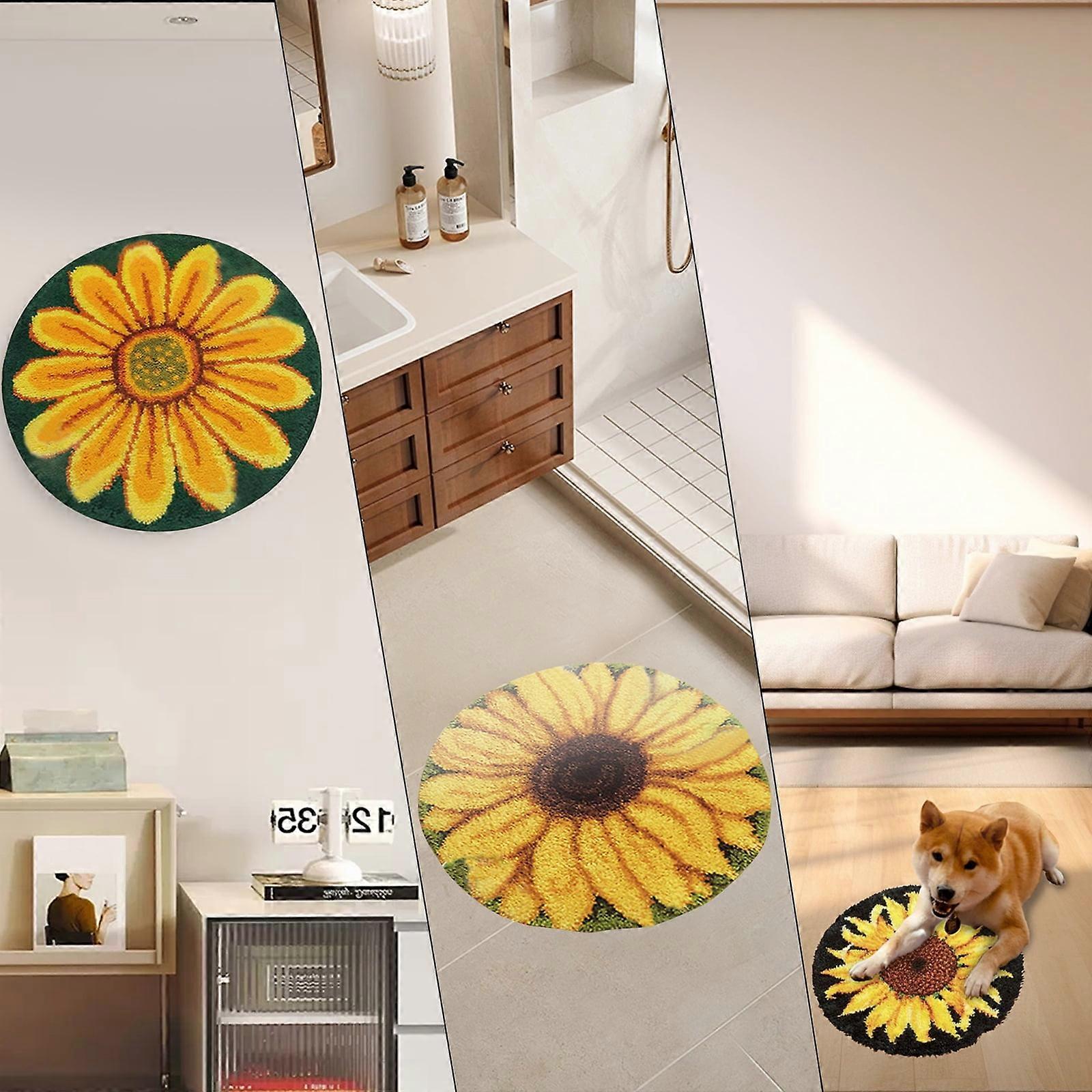 Latch Hook Rug Kit Sunflower Pattern, 50x50cm, DIY Carpet Yarn Kit for Home Decor, Pet Rugs, Easy to Use, compatible with crochet tools