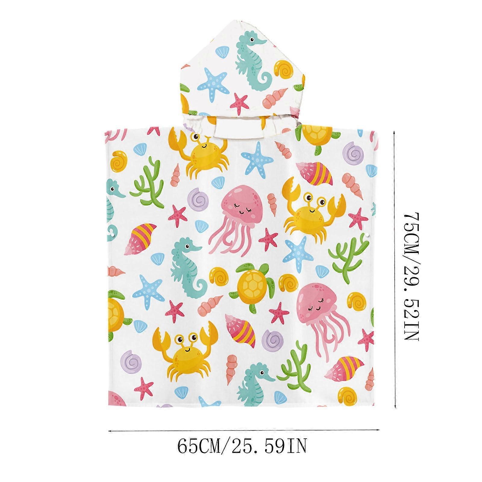 XIAOLE Kids Hooded Beach Towel, Baby Surf Poncho, Soft Cotton Wrap for Boy Girl, 56"X24", Ocean Pattern