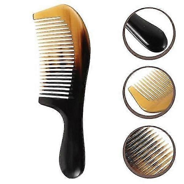Horn Comb, Wide Tooth Detangling Comb with Rounded Teeth for Thick/Thin Hair, Anti-static, 16cm – Compatible with Hairdressing Tools