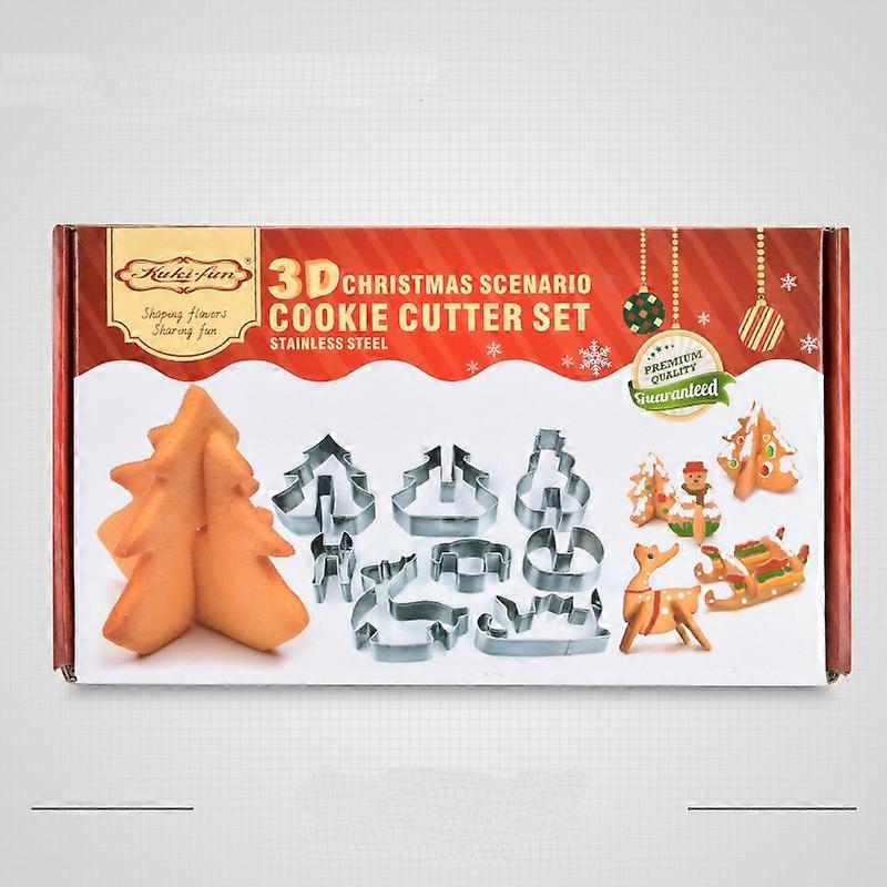 Baking tools: 8-piece stainless steel cookie cutter set, 3D Christmas cookie molds and cake molds.
