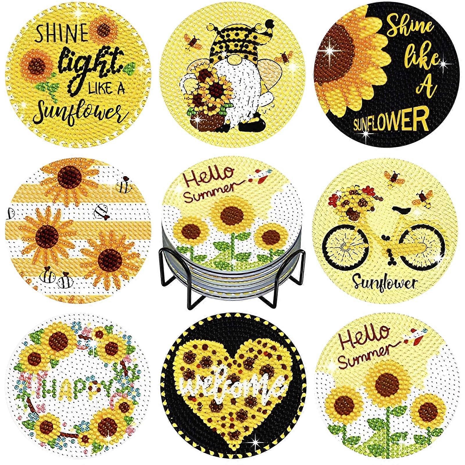 FUYGRCJ 8PCS Diamond Painting Coasters Kit DIY Sunflower Art with Holder, Compatible with DIY Craft Lovers, Gifts for Adults Kids
