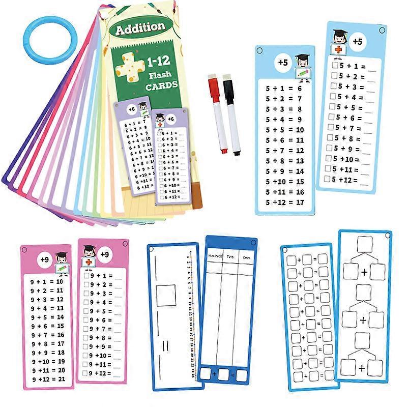28pages Multiplication Flash Cards 0-12 Large Math Flash Cards with Dry Erase Pens Rings Multiplication Charts Educational Times