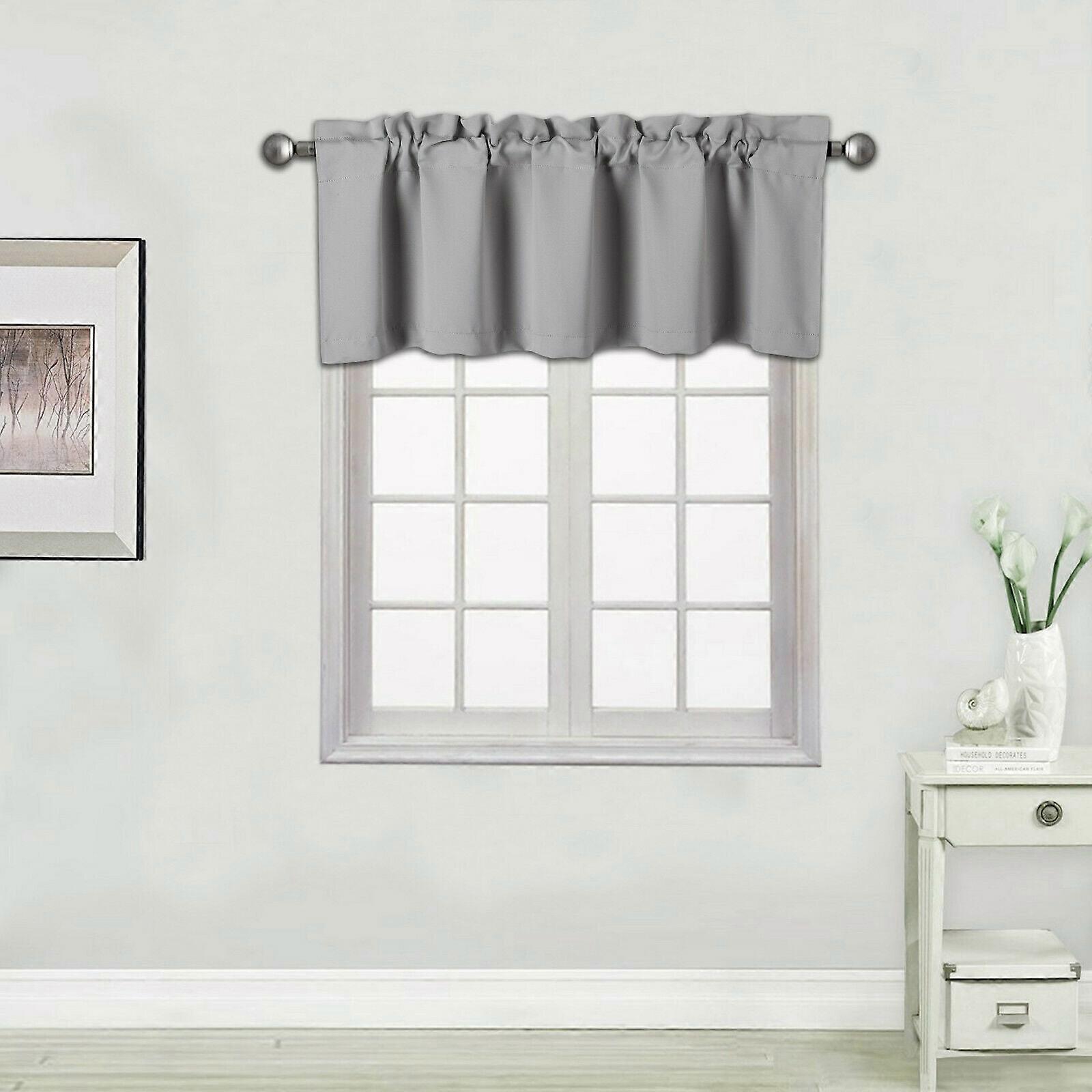 Straight Wave Valance Rod Pocket 54x18 inch, Blackout Thermal Insulated, Silver for Kitchen Bedroom Small Window Décor 1 Pc
