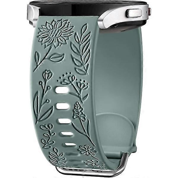 Sunflower Engraved Strap Compatible with Samsung Galaxy Watch 7 6 5 4 40mm 44mm Women, 20mm Soft Silicone Band for Galaxy Watch Pine